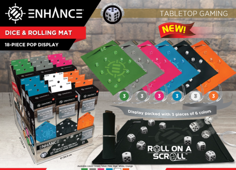 ENHANCE Tabletop Roll on a Scroll 6-sided Dice and Rolling Mat - White