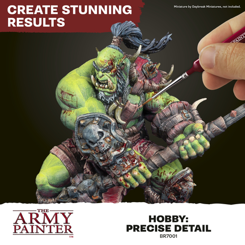 This brush will allow you to perform any precision paintjob you want on your miniatures. It has a very sharp point, is small and thin enough to get anywhere on a model.