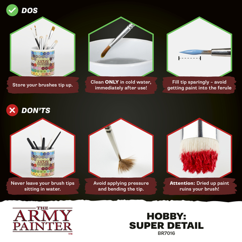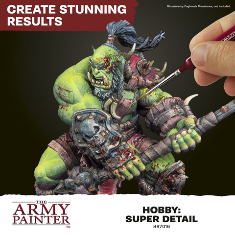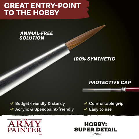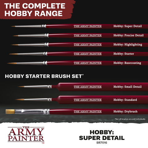 This super fine hobby brush is for the smallest of paint jobs, like dotting the eyes or painting fine lines. The Super Detail brush comes with the characteristic red handle as do all our Hobby Brushes.