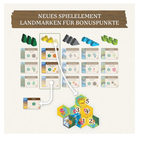 Cascadia wächst weiter! Endlich das „Spiel des Jahres 2022“ mit bis zu 6 Personen spielen und zusätzliche Spielelemente entdecken. Mit dieser Erweiterung weiterhin weitläufige Lebensräume erschaffen und neue schöne natürliche Wahrzeichen, die Landmarken, darin platzieren. Diese verleihen jeder Umgebung ihr eigenes Aussehen und ermöglichen wertvolle Punkte bei Spielende. Zusätzlich enthalten sind neue Wertungskarten für die Tiere. Die Erweiterung ist nur mit dem Grundspiel spielbar. Für Familien ab 10 Jahren.