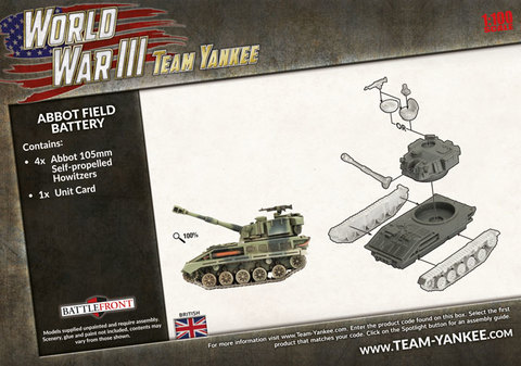 contains four FV433 Abbot self-propelled guns, six resin tank commander figures & one Unit Card.