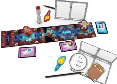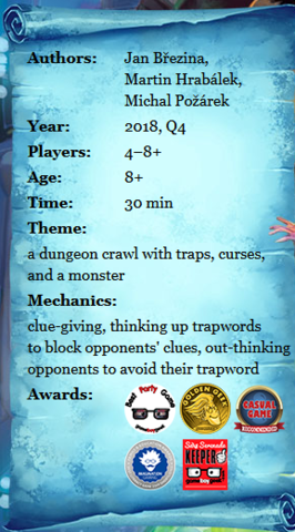 Trapwords ist ein lustiges und schnelles Partyspiel für zwei Teams, die gleichzeitig ihre Listen mit „Fallenwörtern“ erstellen. Ihr seid die mutigen Abenteurer, die durch einen Fantasy-Dungeon voller Fallen und fieser Flüche schleichen und am Ende natürlich gegen einen Bossgegner antreten. Um es durch den Trapwords-Dungeon zu schaffen, muss einer von euch einen Begriff beschreiben und die anderen ihn erraten. Der Haken ist: Das gegnerische Team wählt 5 Wörter aus, die ihr nicht verwenden dürft. Und euer Hinweisgeber kennt diese Fallenwörter nicht!