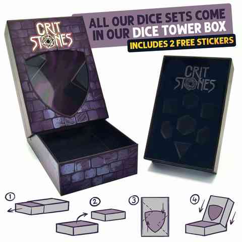 - Unique Dice Tower Box: In our quest to provide with the highest value possible we designed a unique box that, next to protecting your dice with high quality foam inserts, turns into a dice tower! Each box also comes with two premium vinyl GlassStaff stickers and special surprise you’ll find once you unpack your set.