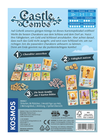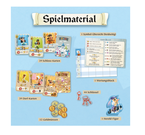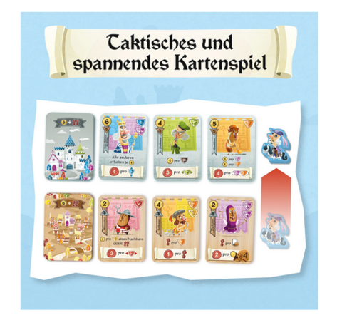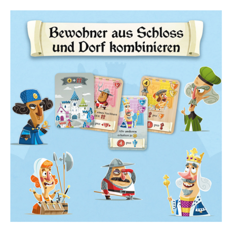 Ein Hofstaat will sorgfältig ausgesucht sein! In der Stadt oder im Dorf Personen anwerben und Kombo-Effekte auslösen. Im taktischen Kartenspiel wählen die zwei bis fünf Spielerinnen und Spieler Bewohner aus dem Dorf und der unteren Stadt für ihre Auslage aus. Die Charaktere lösen Sofort-Effekte aus und geben je nach Positionierung Punkte, die bei der Schlusswertung am Spielende zum Tragen kommen. Die richtigen Entscheidungen auf dem Weg zur besten Kombo treffen und flexibel agieren: Möglichst viele verschiedene Symbole sammeln, Karten an spezifischen Positionen platzieren oder doch auf ganz andere Art und Weise vorgehen? Schnelles und taktisches Kartenspiel mit hohem Wiederspielreiz. Der Faraway-Nachfolger für Spielerinnen und Spieler ab zehn Jahren.