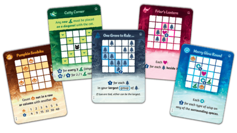 Familien und Freunde erforschen die Magie von Wispwood in diesem kompetitiven Legespiel für jedermann!