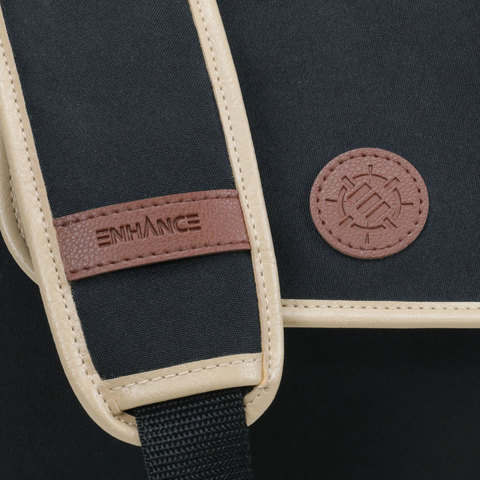 Our unique design features a leather ENHANCE emblem, tan leather lining on both exterior of Magic the Gathering Carrying bag, and on the padded shoulder straps