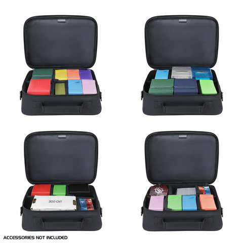 The mtg carrying case storage case is equipped with rigid flexible dividers (1 Large / 4 Small) in order to organize larger items such as commander deck boxes, dice bags, and more. While the front of the magic deck carrying case is secured by a easy-access zipper, and is spacious to store dice bags, booster packs, top loaders, card sleeves and other small tcg gaming accessories