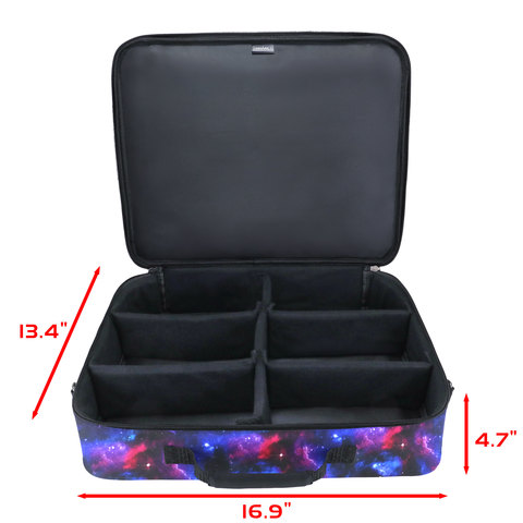 The mtg bag card storage case is equipped with rigid flexible dividers (1 Large / 4 Small) in order to organize larger items such as commander deck boxes, dice bags, and more. The front of the mtg deck carrying case is secured by a easy-access zipper, and is spacious to store dice bags, booster packs, top loaders, card sleeves, and playmats