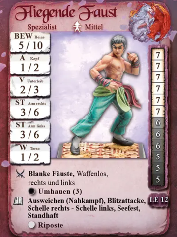 Er beherrscht den waffenlosen Kampf wie kein anderer. Kommt er in Fahrt, landet er blitzschnell Treffer auf Treffer. Seid auf der Hut, wenn er euch zu nahe kommt.