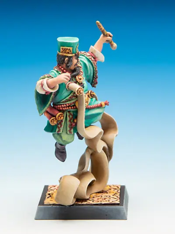 Der Figur liegt die Charakterkarte mit allen für Freebooter’s Fate benötigten Spielwerten bei. Die Metallfigur wird unbemalt und in Einzelteilen geliefert und muss noch zusammengebaut werden.