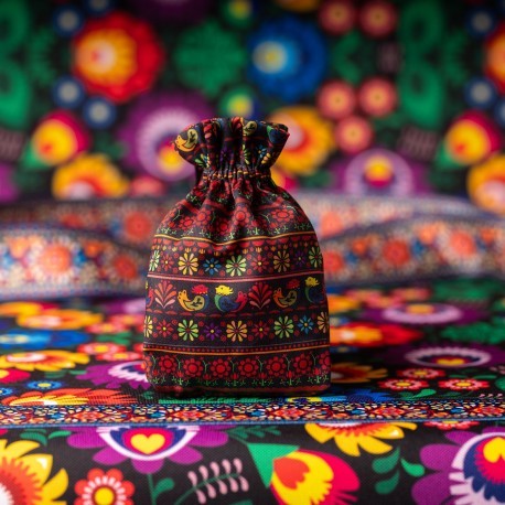 Woven from the threads of heritage, this pouch carries the spirit of folk artistry into the world of dice. The Full Art Dice™ Pouch: Krajka from Q WORKSHOP draws inspiration from traditional Polish weaving — rich in symbols, hues, and life. Against a black background, colorful flowers and birds intertwine with geometric motifs, echoing the charm of handwoven belts crafted on wooden looms.