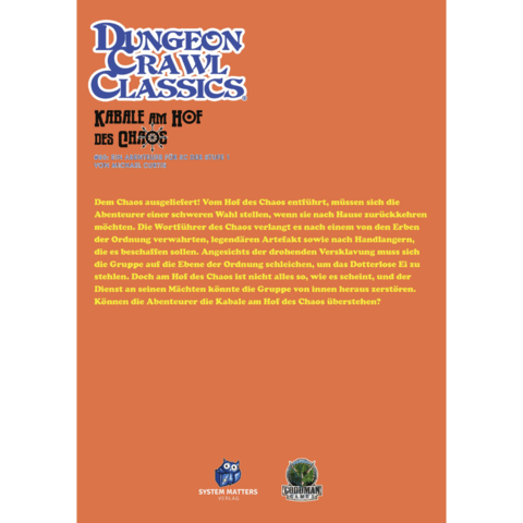 Vom Hof des Chaos entführt, müssen sich die Abenteurer einer schweren Wahl stellen, wenn sie nach Hause zurückkehren möchten. Die Wortführer des Chaos verlangen es nach einem von den Erben der Ordnung verwahrten, legendären Artefakt sowie nach Handlangern, die es beschaffen sollen. Angesichts der drohenden Versklavung muss sich die Gruppe auf die Ebene der Ordnung schleichen, um das Dotterlose Ei zu stehlen. Doch am Hof des Chaos ist nicht alles so, wie es scheint, und der Dienst an seinen Mächten könnte die Gruppe von innen heraus zerstören.