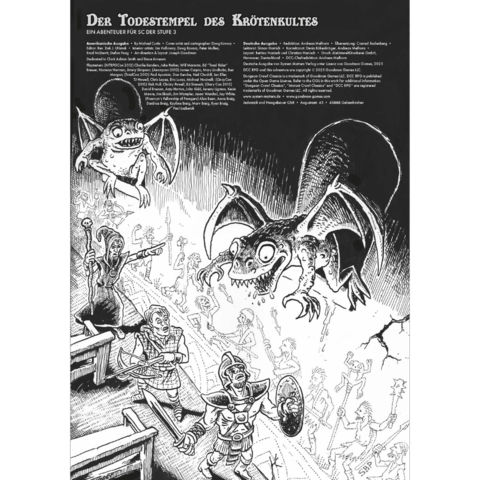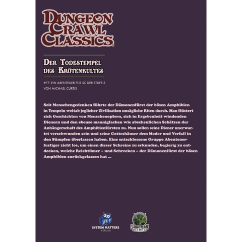 Seit Menschengedenken führte der Dämonenfürst der bösen Amphibien in Tempeln weitab jeglicher Zivilisation unsägliche Riten durch. Man flüstert sich Geschichten von Menschenopfern, sich in Ergebenheit windenden Dienern und den ebenso mannigfachen wie abscheulichen Schätzen der Anhängerschaft des Amphibienfürsten zu. Nun sollen seine Diener unerwartet verschwunden sein und seine Gotteshäuser dem Moder und Verfall in den Sümpfen überlassen haben. Eine entschlossene Gruppe Abenteuerlustiger zieht los, um einen dieser Schreine zu erkunden, begierig zu entdecken, welche Reichtümer – und Schrecken – der Dämonenfürst der bösen Amphibien zurückgelassen hat …