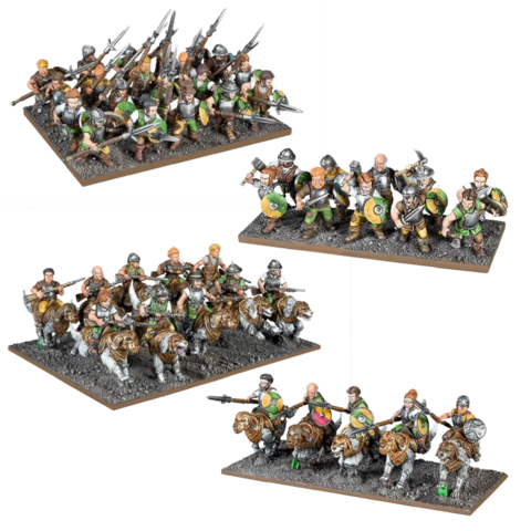 The Kings of War Halfling Muster Battlegroup contains a starter force for your Halfling army including 45 high quality plastic Halfling miniatures.
