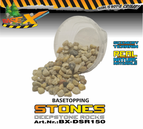 Ergänze dein Basetopping mit den hochwertigen „STONES“ von BASE X – eine sorgfältig ausgewählte Sammlung natürlicher Steine, die speziell dazu entwickelt wurde, größere Bases eindrucksvoll zu gestalten und noch grandioser wirken zu lassen.
