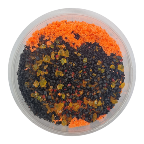 Das "Volcano" Topping enthält kleine Glaselemente und leuchtenden Flock, die einen UV- und Glow-in-the-Dark-Effekt besitzen. Im Tageslicht zeigt es ein realistisches Lava-Design, das die Base deiner Miniatur in einem beeindruckenden, feurigen Orange erstrahlen lässt. Nach dem Auftragen und Trocknen leuchten die enthaltenen Elemente im Dunkeln nach, was deinem Diorama oder deiner Miniatur einen zusätzlichen, epischen Effekt verleiht.