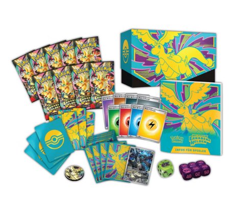 Sieh mit ehrfürchtigem Staunen zu, wie Mega-Dragoran-ex in die Lüfte emporsteigt und eine Pokémon-Starbesetzung in den Kampf führt! Trainer-Pokémon und Stellar-Terakristall-Pokémon-ex verbünden sich mit zurückkehrenden und neu entdeckten Mega-Entwicklungs-Pokémon-ex, von denen einige in ganz besonderen Illustrationen ihre größten und kühnsten Attacken zur Schau stellen. Feiere die Stars aus Karmesin & Purpur und den Anbruch von Mega-Entwicklung mit der Pokémon-Sammelkartenspiel-Erweiterung Mega-Entwicklung - Erhabene Helden!