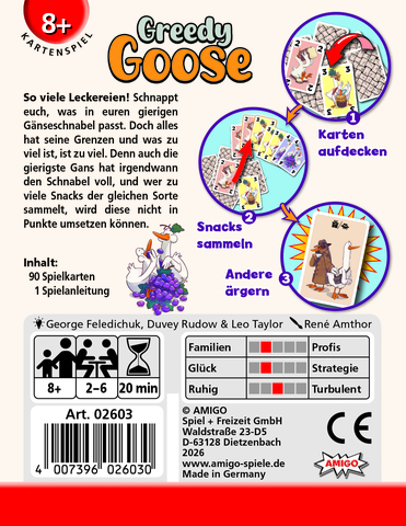 Doch alles hat seine Grenzen und was zu viel ist, ist zu viel. Denn auch die gierigste Gans hat irgendwann den Schnabel voll, und wer zu viele Snacks der gleichen Sorte sammelt, wird diese nicht in Punkte umsetzen können.