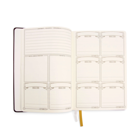 Next to all the standard stuff you expect from a Character Sheet this notebook also offers the ability to track Spells, spell slots, coinage, loot, customizable character resources, locations, components, magice potions and way more!