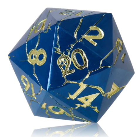 This shiny blue dice set features bright golden numbers and cracks. True honor and nobility!