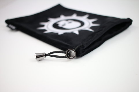 Nichts endet. Alles gehorcht. Die Deathbound Würfeltasche trägt das Zeichen des ewigen Kreislaufs – ein zerbrochener Sonnenkranz um ein stummes Totengesicht. Sie ist nicht nur Behältnis, sondern Schwur: an Herrschaft über den Tod, an stille Legionen und an eine Macht, die nie ruht.
