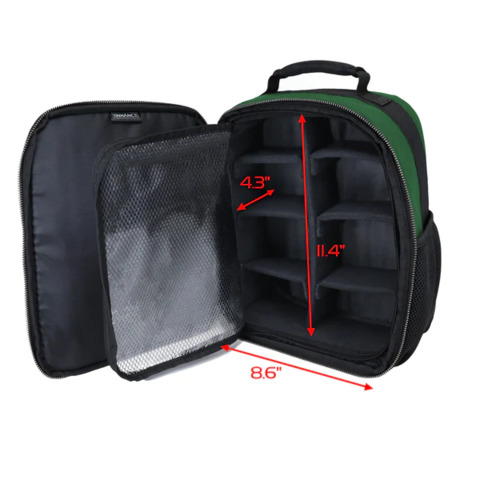 The front deck compartment is equipped with rigid flexible dividers in order to transport items such as small cardboard boxes, etc. or smaller items such as multiple deck box (up to 8 standard sized deck boxes), dice bags, packs and sleeves, and more. The choice of design is yours. Zip up the defender screen to ensure your items are snug and safe when opening up the main compartment, or from shifting around during travel. Front Deck Compartment Dimensions: 11.4 x 8.7 x 4.3 Inches