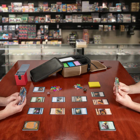 Built for the ritual of game night (and the reality of travel), the Designer Edition Compact Trading Card Backpack line keeps your collection protected and your setup fast, all while accessorizing the fit. Inside, you’ll find two purpose-built compartments: a large main section sized for deck boxes, with adjustable dividers so you can organize your loadout your way: Commander, Standard, Pokémon, Yu-Gi-Oh, and everything in between. Up front, a dedicated accessory pocket handles the “little stuff” that always matters: dice bags, booster packs, notepads, counters, and more. A side playmat pocket with a side-release buckle keeps your roll secure, and a hidden zip pocket is perfect for pens, pencils, and tracker tags (AirTag-sized). Clean design. Smart storage. Ready when you are.