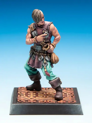 Der Figur liegt die Charakterkarte mit allen für Freebooter’s Fate benötigten Spielwerten bei. Die Metallfigur wird unbemalt und in Einzelteilen geliefert und muss noch zusammengebaut werden.