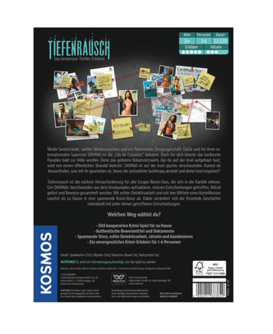 Wo ist Dayana? Der Superstar ist spurlos verschwunden. Bald wird die Polizei anrücken und das Inselparadies absuchen. Somit ist das geheime Drogennetzwerk in Gefahr, das die ein bis sechs Spielerinnen und Spieler dort aufgebaut haben! Wird es ihnen gelingen, den Fall vor der Polizei zu lösen? Spuren auswerten, dubiose Inselbewohner befragen und in eine spannende Story eintauchen. Mit jeder neuen Entscheidung ändert sich der mögliche Ausgang der Geschichte. Neben Spielkarten und Hinweisen werden Websites, Google Maps, E-Mails und Telefonate für die Detektivarbeit genutzt. Viele Wege einen Fall zu lösen – das interaktive Krimi-Spiel ab 14 Jahren.