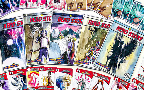 Hero Story verbindet Stichspiel und persönliche Tableau-Entwicklung. Das Spiel wird über 5 Runden mit jeweils 8 Stichen gespielt. In jeder Runde fügst du deinem Helden oder deiner Heldin eine weitere einzigartige Fähigkeit hinzu. Du kannst diese Fähigkeiten aktivieren, indem du sie mit Ausdauer auflädst. Außerdem wählst du deine Gesinnung für diese Runde. Mit einer guten Gesinnung möchtest du möglichst viele Stiche gewinnen, mit einer bösen Gesinnung keinen einzigen. Während der Runde kannst du das Stichspiel dann mit deinen Fähigkeiten beeinflussen und überraschende Effekte erzielen. In der 5. Runde schließt ihr eure Entwicklungsgeschichte mit der Enthüllung eurer Superidentität ab.