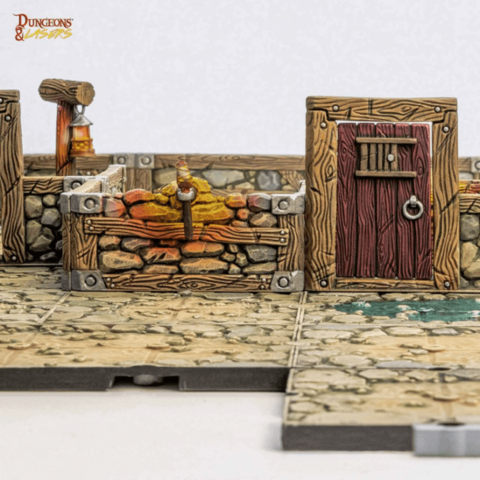 Dungeons & Lasers terrains are manufactured in a tabletop scale with 30mm visible grids and 25mm half-height walls.