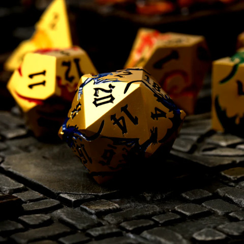 x Heavy Metal: Made from premium Aluminum-Zinc alloy, these dice are built to last. The metal construction ensures durability and a satisfying weight in hand.