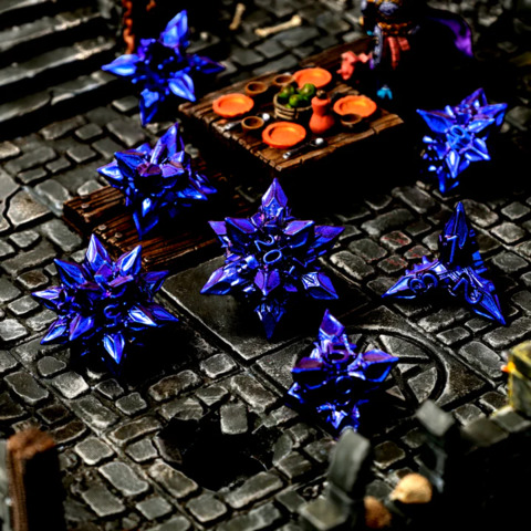 These dice are made out of metal and are very spiky! They have a satisfying roll and a unique look.