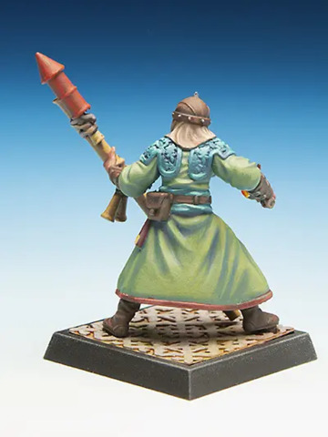 Der Figur liegt die Charakterkarte mit allen für Freebooter’s Fate benötigten Spielwerten bei. Die Metall-Figur wird unbemalt und in Einzelteilen geliefert und muss noch zusammengebaut werden.