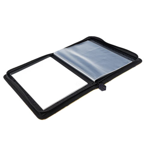 x Includes 10 single-pocket pages for character sheets and notes, and six 9-pocket pages for standard size spell cards 2.5" (6.3 cm) x 3.5" (8.8 cm)