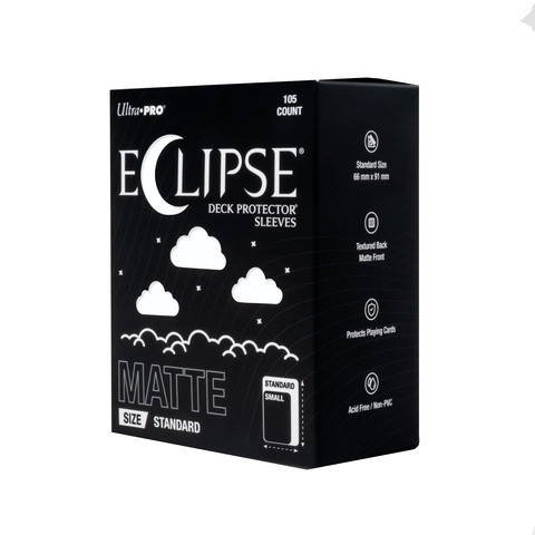 The next evolution of Ultra PRO's legendary ECLIPSE® DECK PROTECTOR® sleeves is here. Experience the enhanced texture, optimized shuffle feel, and the rigorously tested, consistent quality of the latest ECLIPSE® formulation. Designed for competitive play and archival collections, ECLIPSE® DECK PROTECTOR® sleeves feature fully-opaque backings and split-resistant seals. ECLIPSE® DECK PROTECTOR® sleeves are available in matte and gloss fronts, standard and small sizes, and 10 vibrant colors.