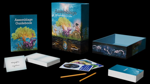 Assemblage is a card-based eco-fantasy storytelling game for 2-6 players where each player portrays an entire species—and collaborates in crafting an interdependent ecosystem on the verge of collapse. You'll begin by collectively choosing a strange and mysterious habitat. Then you will draw prompt cards and take turns describing the assemblage of species living there: history, relationships, adaptations, and myths. Then you'll encounter an epic environmental disaster—and explore what it means to survive.