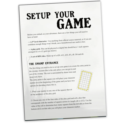 In this one-player adventure for the 5th edition of the world's most popular role-playing game, you will enter a swamp in search of artefacts related to a fallen deity.