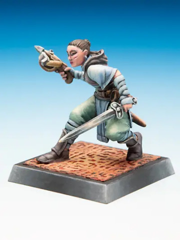 Der Figur liegt die Charakterkarte mit allen für Freebooter’s Fate benötigten Spielwerten bei. Die Metall-Figur wird unbemalt und in Einzelteilen geliefert und muss noch zusammengebaut werden.