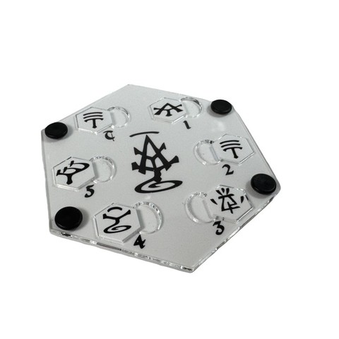 x 1x Runen-Konsole: Hexagonale Acryl-Platte mit nummerierten Steckplätzen für die Rundenkontrolle und speziellem Slot für Teclis.