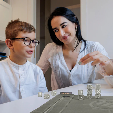 Take your dice games and board games to the next level with the ENHANCE Tabletop Roll on a Scroll™ Dice Case and 6 Sided Dice Set crafted for precision, durability, and elegance. Compact for easy travel, these soft velvet-feel Scrolls are available in 6 colors and come with a color-coordinated 12pc dice set (D6).