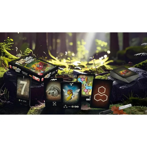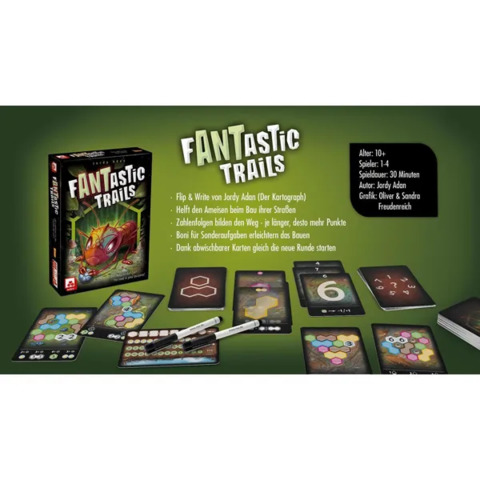 In diesem Wald wimmelt es nur so von Ameisen: Über drei Runden deckt ihr Karten auf und tragt Zahlen auf eurem Waldboden ein. Durchgehende Zahlenreihen bilden lange Ameisenstraßen und bringen am Ende Punkte. Erfüllte Aufgaben erleichtern den Straßenbau. Worauf wartet ihr noch? Lasst es kribbeln und krabbeln.