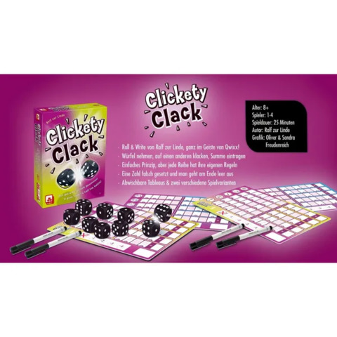 Es klingt so simpel: Nimm einen Würfel aus dem Pool, klacke mit ihm auf einen zweiten Würfel und trage die Summe der beiden auf deinem Tableau ein. Aber wähle mit Bedacht! Jede Reihe hat ihre eigenen Regeln. Und nicht jede eingetragene Zahl bringt dich dem Sieg näher!