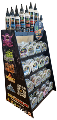 Das hochwertige Base X POS-Regal wurde speziell für den stationären Tabletop-Fachhandel entwickelt und vereint starke Markenwirkung mit einer verkaufsfördernden Präsentation auf kompakter Fläche. Gefertigt aus gelasertem HDF und in edlem Schwarz lackiert, sorgt es mit seitlichen Poster-Logos für einen aufmerksamkeitsstarken Auftritt im Laden.