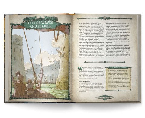 This book features 20 adventure sites spread across five districts, along with a number of campaign seeds. The player characters will experience a fierce power struggle in the city’s underworld, take on the role of demon hunters, and uncover secrets about Arkand’s storied past that could change the city forever.