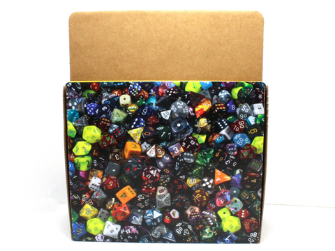 This cardboard display is empty of product but will hold up to 28 dice sets in crystal cubes.